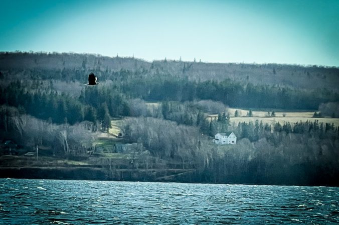 Oh – scheint ein Weißkopfseeadler zu sein! In der Vergrößerung sieht der Kopf jedenfalls weiß aus….