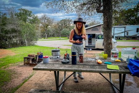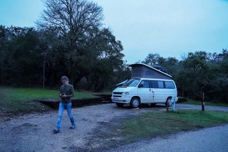 Der Ranger des Angelsees schneit mit seinem Pickup vorbei. Er freut sich über das kühle Wetter und die deutschen Gäste. Da wir gestern kein Kleingeld hatten, haben wir 10 Dollar in die Campkasse gelegt, das war zu viel, also gibt er uns einen Dollar zurück und berichtet derweil vom Leben in der Wüste. Eine Wüste, die sich nach dem nächtlichen Temperatursturz nicht mehr ganz so echt anfühlt. Denn statt der gestrigen 30 Grad hat´s heute maximal 14. Einzelne Tröpfchen Regen fallen, mehr als ein Niesen des Himmels ist es aber auch nicht.