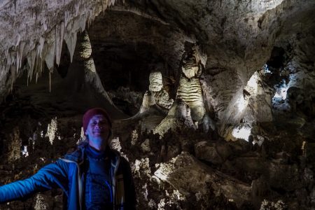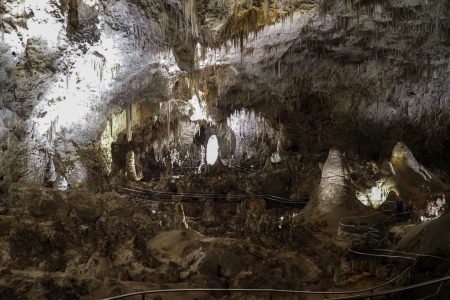 Die Carlsbad-Caverns sind mit ihren 487 Metern unter der Erdoberfläche die tiefsten Tropfsteinhöhlen der USA. Ihr „Big room“ ist einer der größten unterirdischen Räume weltweit, in ihrem „Bat cave“ leben ca. eine halbe Millionen mexikanischer Bulldoggfledermäuse, die wir aus Artenschutzgründen aber leider nicht besuchen dürfen. Sonst wird der Weißnasenpilz der beflügelten Mäuschen nämlich schlimmer. Und die Ringtail Kätzchen schlafen tagsüber.