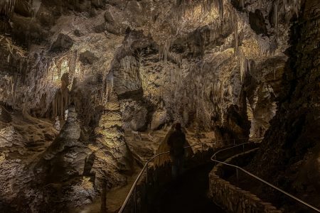 4 Kilometer geht es vorbei an bizarren Stalagmiten und Stalagtiten – erst steil bergab und dann in Wellen.