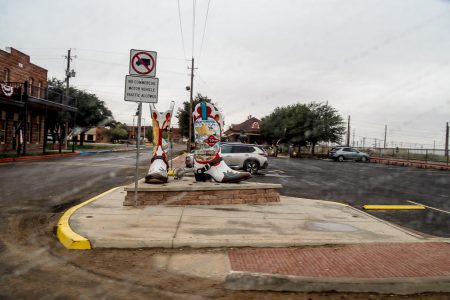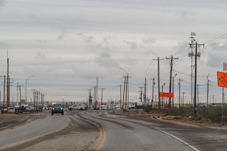 Auf dem Weg nach Carlsbad müssen wir durch Farmland, entlang an flachen, endlosen Ackern, vertrocknet oder unnatürlich grün – vollstoffbewässert. Ölpumpen, Rinder mit gigantischen Hörnern, Pistazien, ein verlassenes Adults- Only-Kino, ein Ex-Apache-TradingPost, Baumwolle – dann kommt auch schon die Stadt, die uns über vier Staaten hinweg wärmstens empfohlen wurde.