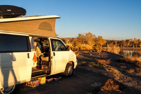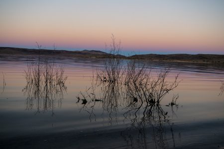 Pelikane fliegen dicht über dem Wasser der untergehenden Sonne entgegen, während wir auf einer Bank über unsere Zukunft flüstern.