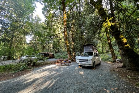 Den Rest des Abends bleiben wir hinter den sicheren Türen des Bullis. Und nachts in unserem soft-sided Dachzelt. Er ist hier irgendwo. Nicht weit. Wir wissen es alle.