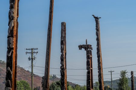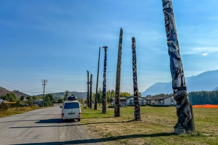 Je weiter wir Richtung Süden rollen, desto bunter wird es. Lieblicher und blumiger. Die Wellen bleiben, die knurrigen Nadeln auch, aber am Wegesrand tut sich etwas auf, das nach „indian summer“ schimmert. Indian Summer in First Nations Land.
