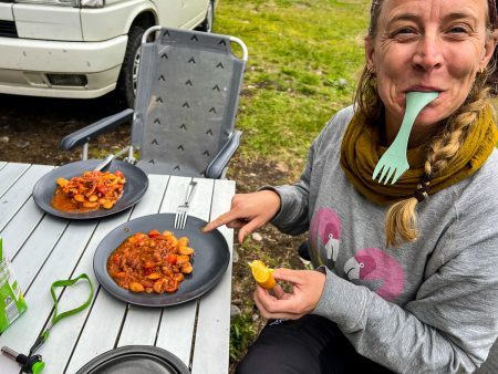 Auf dem uns bekannten Platz Vålågarden parken wir mit Blick auf leuchtend pinke Weidenröschen ein. Zum Kaffee gibt es Toscabulle – ein schwedisches Hefe-Mandelgebäck, das einem die Schuhe auszieht, zum Abendessen Grünkohl. Dinge, nach denen der Körper im Sommer halt zu schreit…