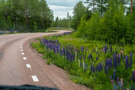 Nach einer letzten Dusche geht’s weiter gen Nordwest: Nadeln werden zu Birkenwäldern und wieder zu Nadeln. Eine Explosion Lupinen am Straßenrand und sehr viel nichts bis zum ersten und letzten Einkaufsstopp auf 190km Strecke: in Älvdalen – im „Flusstal“, 1669 schauriger Schauplatz bekannter Hexenprozesse, heute allerdings ganz harmlos.