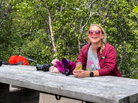 Zum Old Tjikko wollen wir natürlich auch hoch. Keuchend erklimmen wir die Stufen, die aufs Bergplateau führen: 200 Höhenmeter Anstieg auf einen Streich, meine Kontrolletti-Uhr behauptet: hart anaerober Bereich, bitte 35 Stunden Erholung einplanen. Und einen pinken Schweppes trinken.