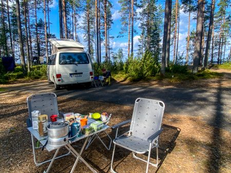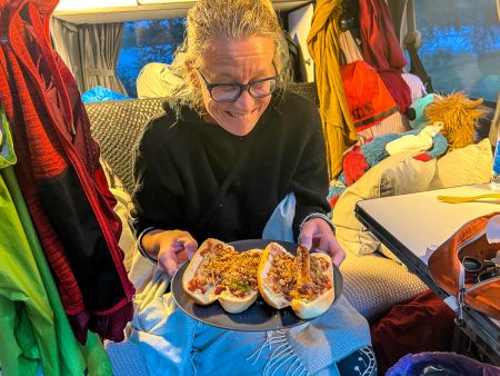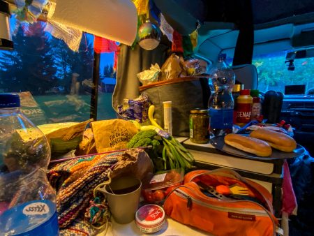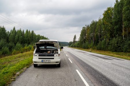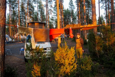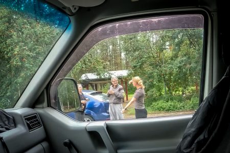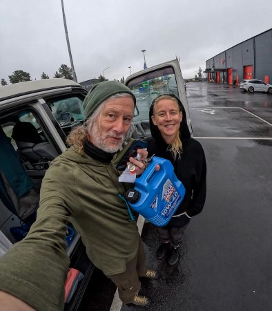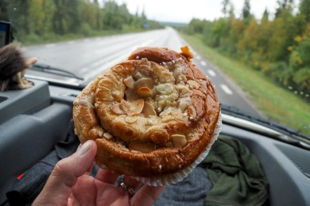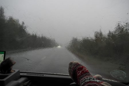 Nach einem ausgedehnten Frühstück, nach dem Fertigstellen des allerersten Schals in der gestrigen Nacht, sind wir mit vollen Bäuchen soweit: heute geht’s auf Vielfraßsuche!