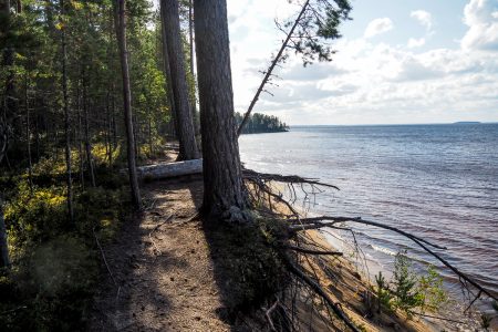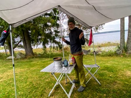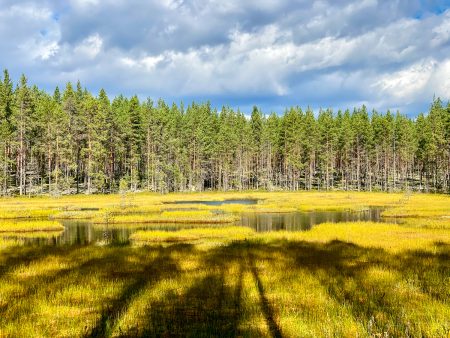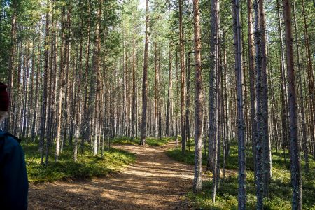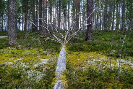 Erst verschwindet das Rauschen des Wassers, dann der Vogelgesang. Als nächstes geben die Insekten das Summen auf und irgendwann ist selbst das letzte Rascheln der Nadeln im Wind weg. Auf einmal stehen wir mitten in einer geräuschlosen Wildnis ohne Pfad und plötzlich wird uns klar: wenn wir hier vom Vielfraß gefressen werden, wird niemals eine Menschenseele unsere Überreste mehr finden. Das ist der Zeitpunkt, an dem wir umdrehen.