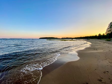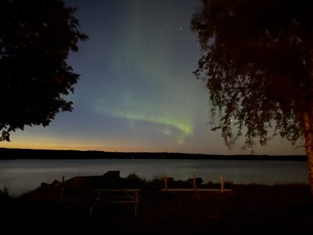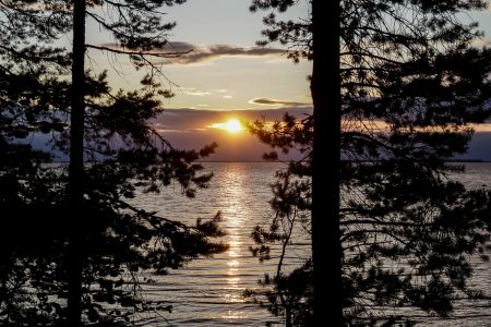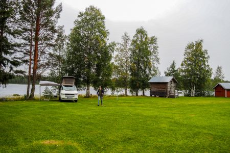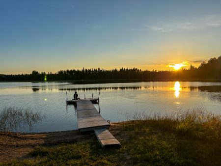 Über dem ruhigen See geht die Sonne sanft unter. Sehnsüchtig schauen wir ihr auf dem Steg vor der Sauna hinterher.