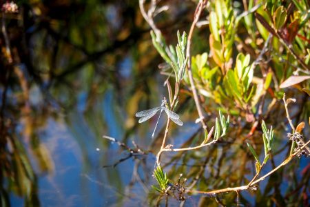 Zwei Libellen –ineinander verkeilt— fliegen vorbei. Sie suchen lange den perfekten Platz zum Liebe machen und finden ihn nicht. Irgendwann lässt die hintere genervt ab und fliegt kopfschüttelnd und alleine in Richtung Seemitte davon. Das passiert, wenn man zu lange zögert. Eine zerbrochene Liebe im Nirgendwo. Obwohl es so vielversprechend angefangen hatte.