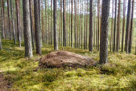 Hinter der unbekannten Losung –auf dem Weg zurück in Richtung einziger Schotterstraße, die unsere Karte hergibt—begegnen wir nur einmal noch tierischem Leben in Form eines kolossalen Ameisenhaufens. Ein gigantischer Berg Arbeit! Hier ist es einfach mal an der Zeit, ein riesengroßes Lob auszusprechen, an all die fleißigen Arbeiterinnen, die emsig zu unseren Füßen kriechen. In dieser Einsamkeit bekommen sie zweifelsohne viel zu wenig Anerkennung für ihr großartiges Werk.