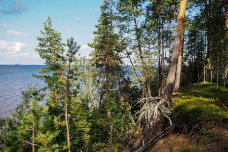 Der Wanderweg startet gleich hinter unserem Camp. Minimal ausgetreten, drängt sich der dichte Wald bereits jetzt sehr nahe an uns heran. Dies hier ist ein gänzlich anderer Forst als der, den ich vor zwei Tagen alleine durchlaufen bin. In einem Wald wie diesen würde ich alleine nicht einen Schritt wagen. Weil in dichten, undurchsichtigen Wäldern wie diesen schaurige Märchen ihren Ursprung haben. Auch russische.