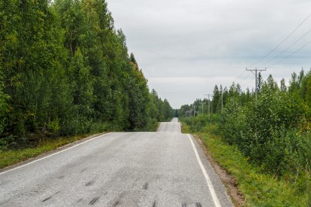 Einen Vielfraß sehen wir nicht. Genauso wenig wie die Braunbären, Luchse oder Wölfe. Wir eieren über die Brücke, die keine mehr ist, wieder nach Hause.