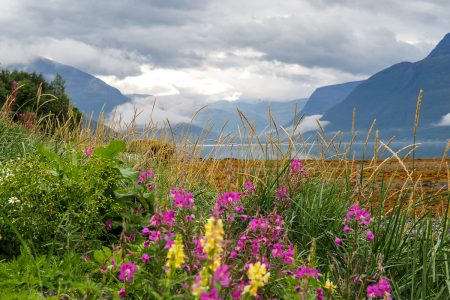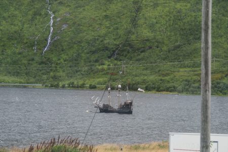 Wir rollen an rauen Bergketten entlang, zwischen denen mystische Nebel stehen. Wasser von allen Seiten: es fließt aus dem Berg, es schäumt an die Fjordufer, es regnet auf die Straßen. Bunte Örtchen fliegen vorbei, ein Piratenschiff dümpelt in einem kleinen Hafen.