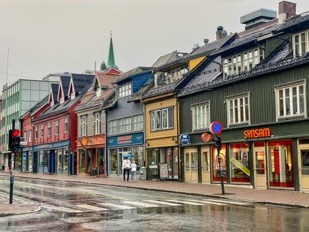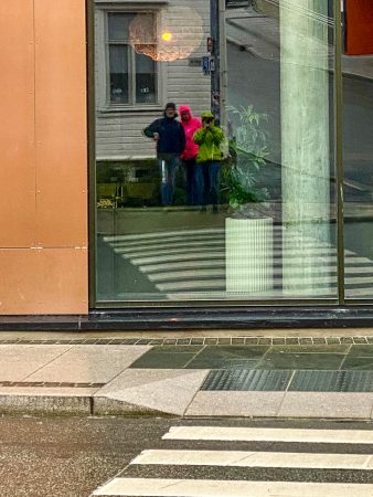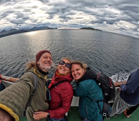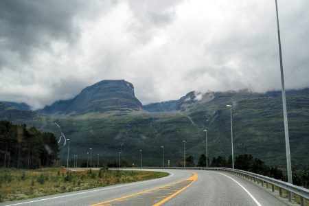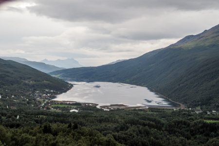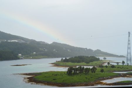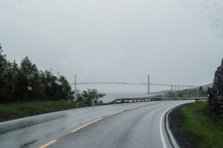 Über der ersten großen Brücke schimmert ein Regenbogen. Das liest sich sehr gut und besagt: es schüttet wie aus Eimern. Fünfzig Schatten von Grau über wenig sichtbaren Fjorden, die zweifelsohne schön sind – und vergleichbar mit allen anderen. Heute reißen sie uns nicht vom Hocker.