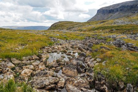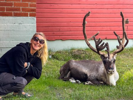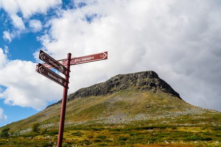 Hinter den drei Schafen müssen wir links: nach Rystad. Unserer Heimat für zwei Nächte – die letzte am Polarmeer.