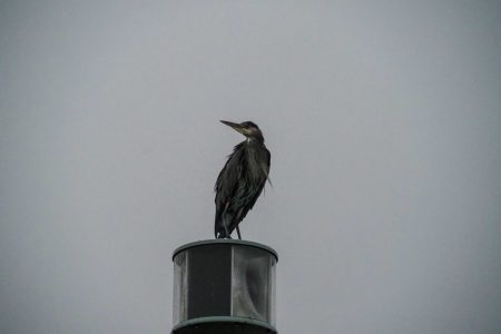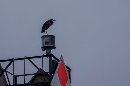 Heute ist nur ein schlecht gelaunter Kranich vor Ort, der mürrisch den Fjord vom Warnlämpchen aus beäugt. Ein paar Hasen hoppeln vorbei: lahm, mit kurzen Ohren und im Fuchslook. Selbst der müde Seehund taucht nur einen Wimpernschlag lang auf: die Straße von Georgia im Montagsregenblues.
