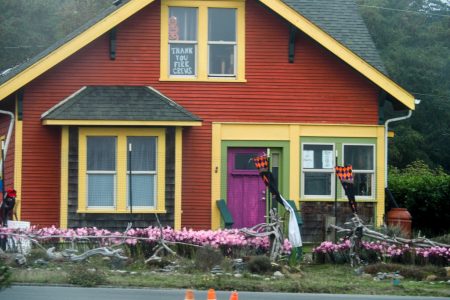 Im netten Port Orford mit seinen bunten Häusern und einladenden Cafés gehen wir einkaufen.