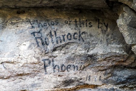 1818 hat ein Herr aus Phoenix seine Werbung an den Stein geschmiert: er vertickt zum unschlagbaren Sonderpreis Fotos des Sees – acht Jahre vor Erfindung der Photographie. Auch das ein wenig mystisch.