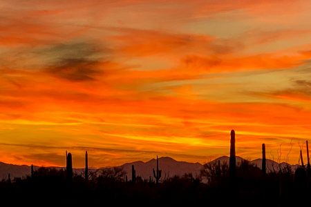 Karl steht direkt neben uns. Er hat fünf Arme und ist über fünf Meter hoch. Nach meiner nachgeschlagenen Milchmädchenrechnung für Saguarokakteen müsste er ungefähr sechzig Jahre alt sein. Ein Jungspunt, der heute Nacht auf uns aufpasst. Damit die Kojoten und Klapperschlangen uns nicht fressen.