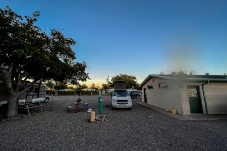Eingeparkt auf Platz Nummer eins wird schnell klar, dass wir die einzigen Reisenden sind. Alle anderen leben hier. In alten, ziemlich abgelebten Wohnwagen. Keine 300000 Dollar „Snowbirds“-Riesenmobile mit gezogenem Jeep hintendran, es gibt niemanden, der sich touristisch hierher verliert.
