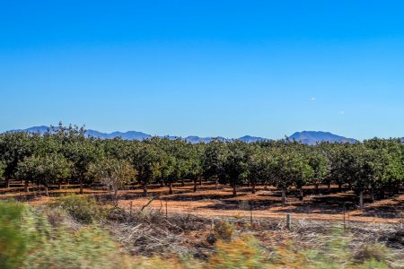 Warntafeln begrüßen uns: Achtung Sandsturmgefahr. Am Highway steht in dicken Lettern eine genaue Verhaltensanleitung, sollte die Wüste zu blasen beginnen: Anhalten, Füße von der Bremse, angeschnallt bleiben. Viel freie Sicht, gigantische Steinhaufen, dann ein paar Pistanzienbaumfarmen.