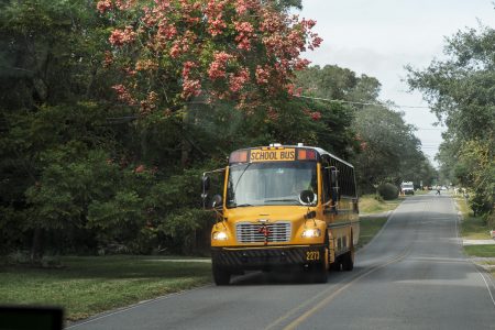 Die Brücke wird wieder hochgezogen und senkt sich – für uns ist Zeit weiter zu düsen — an ausladender Weihnachtsdeko vorbei, einem Schulbus unter Blüten und einem Haus, dessen Besitzer die Nase von Hurricans voll hatte und nach der Zerstörung des letzten nur noch auf Container setzt.