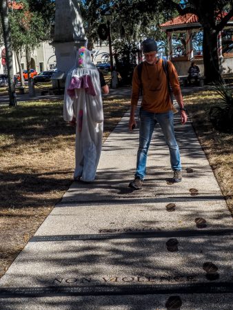 St Augustine ist –schaut man nur auf die Fassaden– eines der hübschesten Örtchen, das wir seit langem durchwandern. Weil Geschichte in den Gassen haust – selbst wenn sie weitestgehend keine rühmliche ist. Wahrlich alte Häuser frisch saniert, eine imposante Kathedrale unweit eines Rathauses, das man als historisch bezeichnen kann. Die Stadt existiert seit 1565, das weitgehend unzerstörte Stadtbild ein Inbegriff der Kolonialarchitektur. Und Stolz tropft von den Häusern mit wilder Weihnachtsdeko, an denen Hündchen in Adventskostüm vorbei hoppeln, aus dessen Fenstern Hände, Mottoshirts und Meerjungfrauen nach draußen blicken.