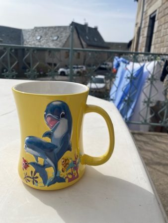 Gegenüber dem Hotel de France aber hat’s noch zwei Bettchen für uns. Stilecht übereinander mit knallbunten Filzdecken. Bisher ist nur Evan hier. Er arbeitet temporär in einem der zwei Restaurants des Orts und spielt für uns Bob Marley ein. Noch hoffen wir, dass der Rest der Gite heute Nacht für uns drei bleibt. 15 Euro pro Nacht inklusiver privater Delphintasse, die ich mir sofort für morgen reserviere, nachdem ich sie nochmal gespült habe. Zusammen mit Evans Müslischüssel, die anscheinend schon etwas länger auf einen Schuss Spüli einsam im Küchenbecken wartet.