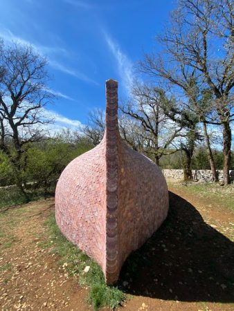 Schäferhütten at their best am Wegesrand. Die letzte —sakral anmutend— ist aus Jakobsmuscheln gefertigt. Ein Pilgerauffangbecken.