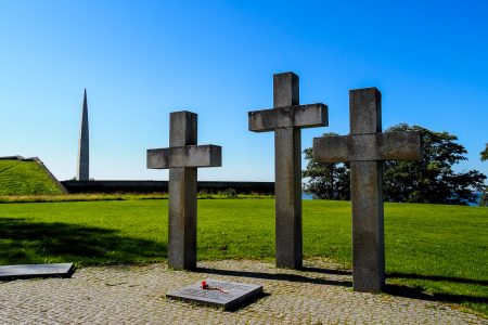 Wir landen auf einem deutschen Soldatenfriedhof. Dahinter eine Gedenkstätte für die 1944 Gefallenen der Abwehrschlacht Estlands.