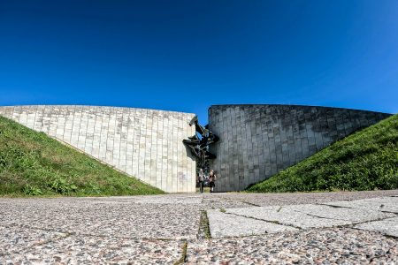 Und gleich dahinter steht ein Denkmal für die unter „kommunistischem Terror“ Ermordeten: eine schwarze Mauer mit Einschusslöchern – dort, wo die „Feinde des Kommunismus“ wortwörtlich an die Wand gestellt wurden.