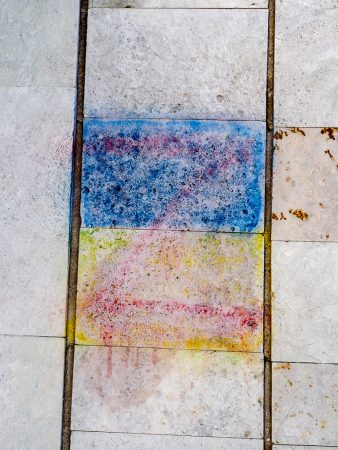 An einem hat man versucht, ein aktuelles Graffiti zu entfernen.