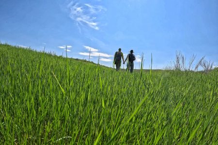 Prärie-Spaziergang: Querfeldein, das ist hier ausnahmsweise im Nationalpark mal nicht verboten sondern sogar empfohlen, hoch auf den Ausguckhügel. Zwecks Runtergucken.