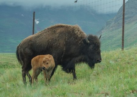 Ich kann nicht mehr. Die Bisons sind RIESIG! Und sie haben tatsächlich zwei Kälbchen dabei! Nicht auszudenken was jemand fühlt, der schon vor Kühen panische Angst hat.