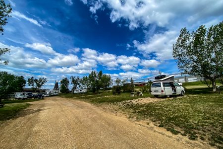 Nur gut 100 Kilometer stehen auf dem Plan, die Rockymountains haben wir erstmal hinter uns gelassen, Prärie voraus, besonders der Bulli freut sich über die wieder sanfteren Hügel – dauernd im 2. oder 3. Gang den Berg hochzukriechen war ihm vermutlich nicht nur zu anstrengend, sondern auch ein bisschen peinlich…
