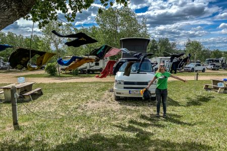 Hilft aber nix, das Dachzelt ist ausgeklappt, der Beifahrersitz gedreht, der Strom eingestöpselt: Der Bulli fährt heute keinen Meter mehr.